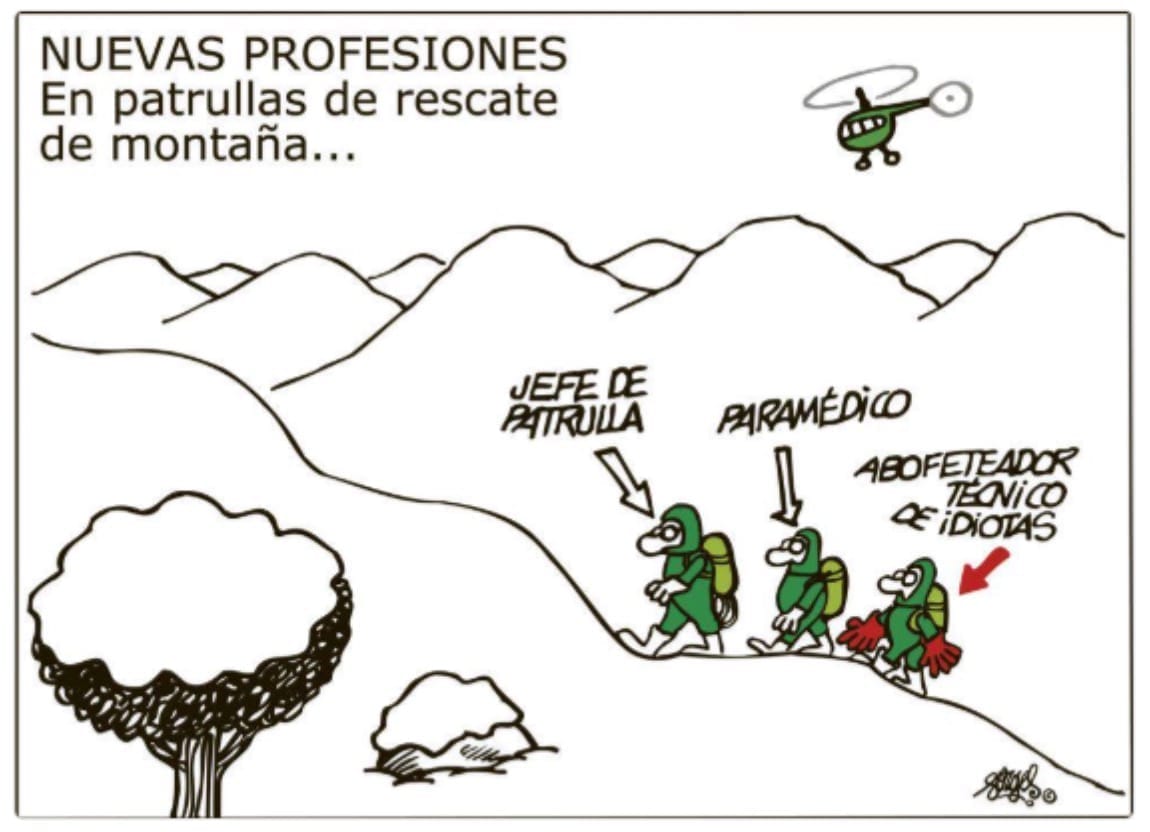 It's even inspired cartoons—like the hilarious Spanish-language comic showing a mountain rescue team with roles including "Jefe de Patrulla" (Team Leader), "Paramédico" (Paramedic), and of course, "Abofeteador Técnico de Idiotas" (Technical Slapper of Idiots). The humor captures a serious truth: effective teaching starts with breaking through complacency. Hook them before you teach them. Get their attention first, then deliver the lesson that could save their life.